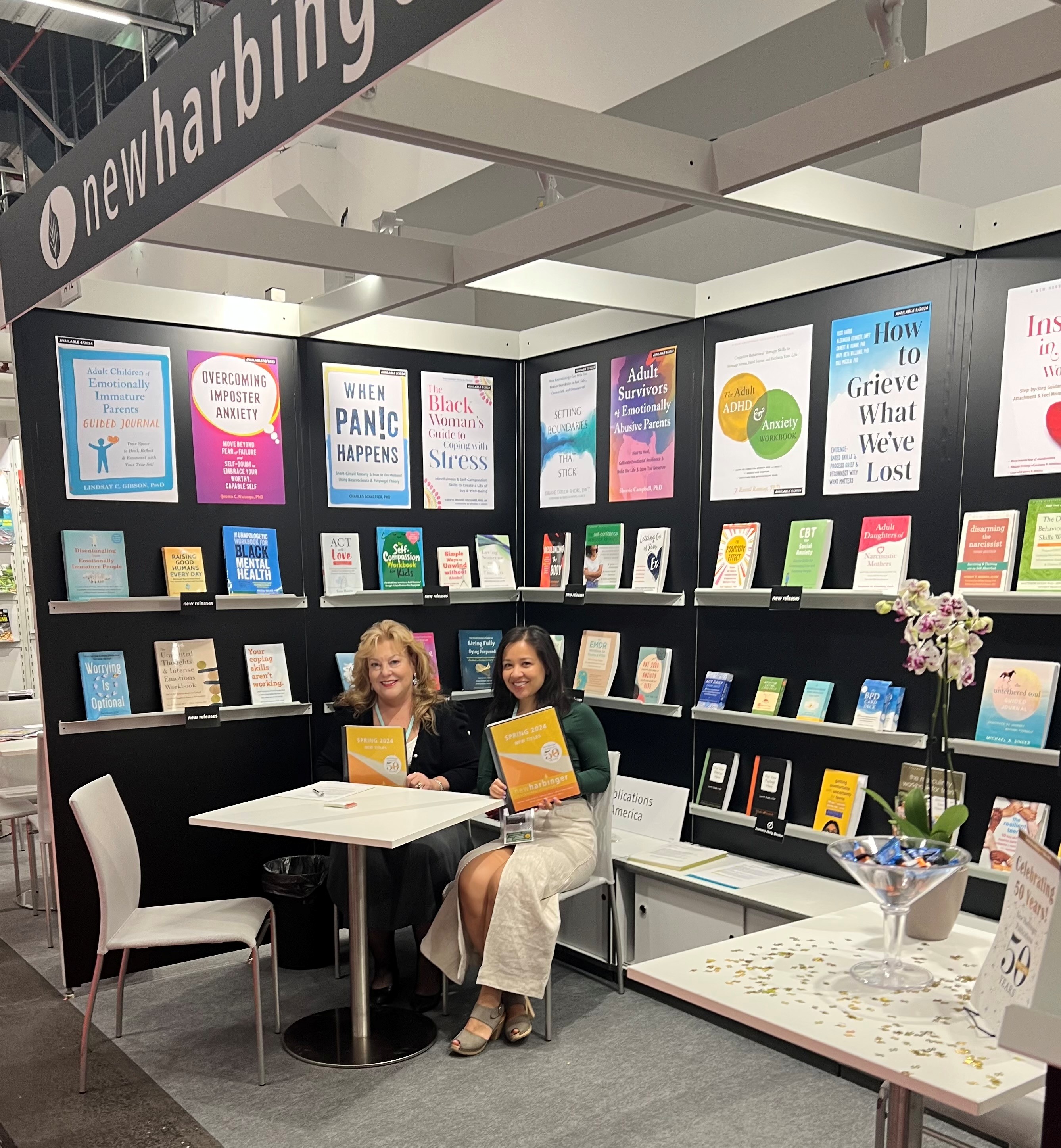 Dorothy Hall Smyk, rights director at New Harbinger Publications (left), and Katie Parr, rights manager at New Harbinger Publications, at the 2025 Frankfurt Book Fair.