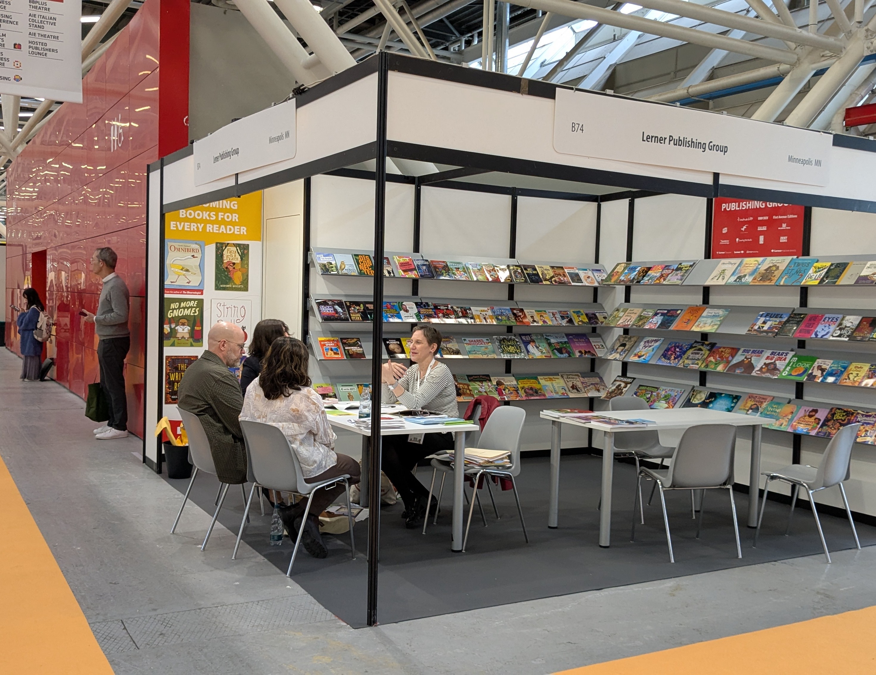 Maria Kjoller, director of rights, special sales, and international distribution at Lerner Publishing, at her company’s booth at the 2025 Bologna Children’s Book Fair.