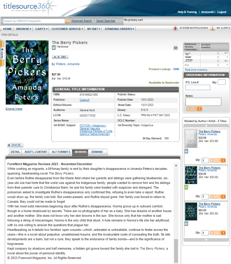 Sample of a review in a wholesale database. (Photo courtesy of Baker & Taylor 360.)