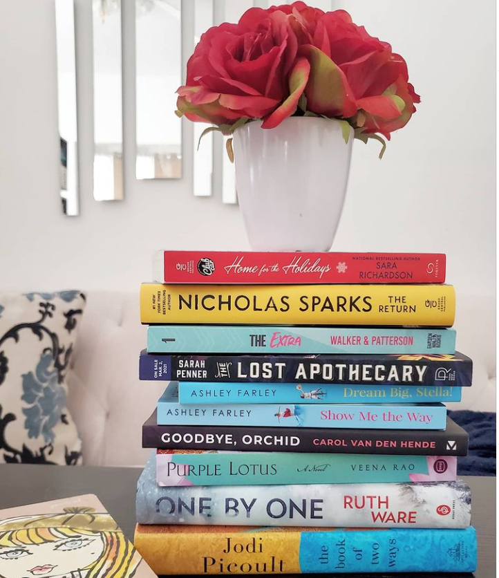 After you have designs in hand, consistency is king. The truth is, the path to purchase is rarely linear. Because most of our lives are busy and full, research has found that it can take two to seven exposures for a new product or item to break its way into our consciousness. That means it benefits us to stack our impressions, be relevant in content and placement, and be visually consistent. This helps break through because human brains naturally scan for patterns and once readers have seen your covers multiple times, they will be more quickly recognized next time. Readers have told me that because my publisher has consistently used a specific font for my title, and orchids in my graphics, they’ve come to associate my cover and orchids with Goodbye, Orchid and Orchid Blooming. See an example banner here: