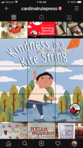 A creative cover reveal on Cardinal Rule Press' Instagram reveal of a new title by Michelle Schuab, Kindness Is a Kite String