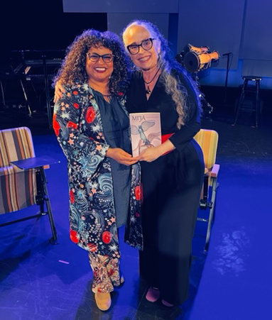 Magdalena Gómez with Rhina Valentín at Pregones Theater in the Bronx, where she launched her memoir in May 2022. Photo by George Malave.