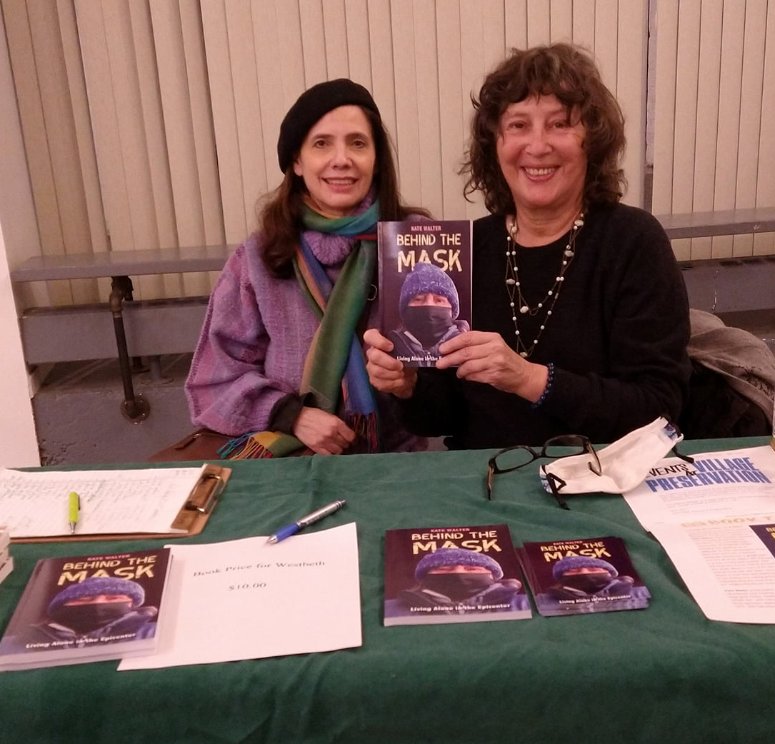 Heliotrope Publisher Naomi Rosenblatt at a book signing with author Kate Walter in Westbeth Artists Housing in Manhattan, 2021. Photo by Jen Maguire.