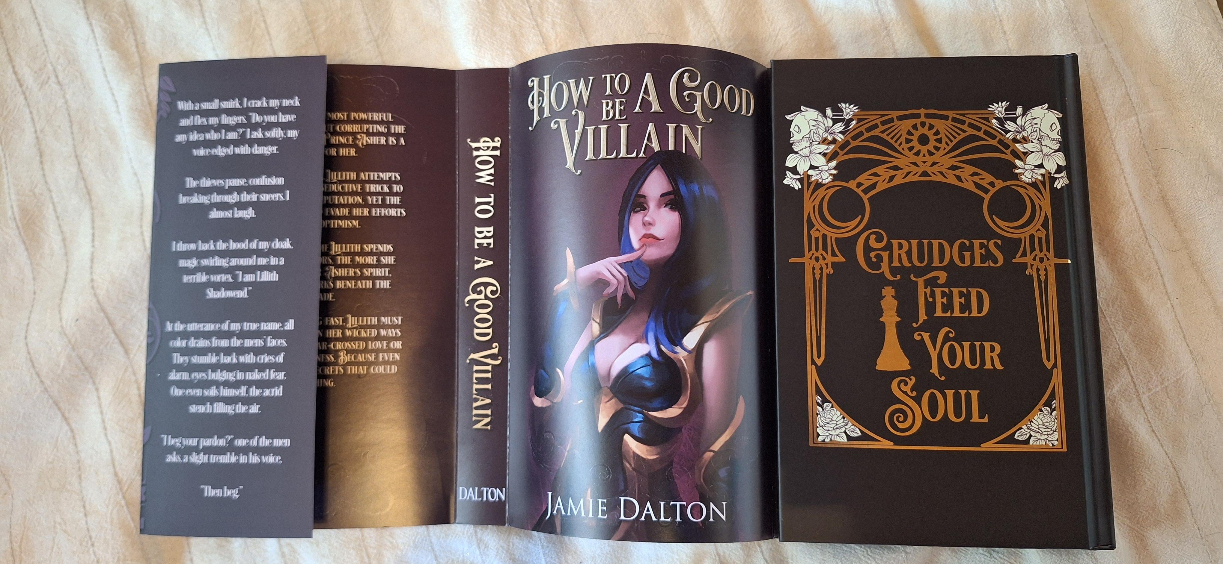 She produced the latter book in two iterations, a hero version and a villain version with a design featuring villain art and black pages with white ink. “I had many readers buy both versions,” she says.